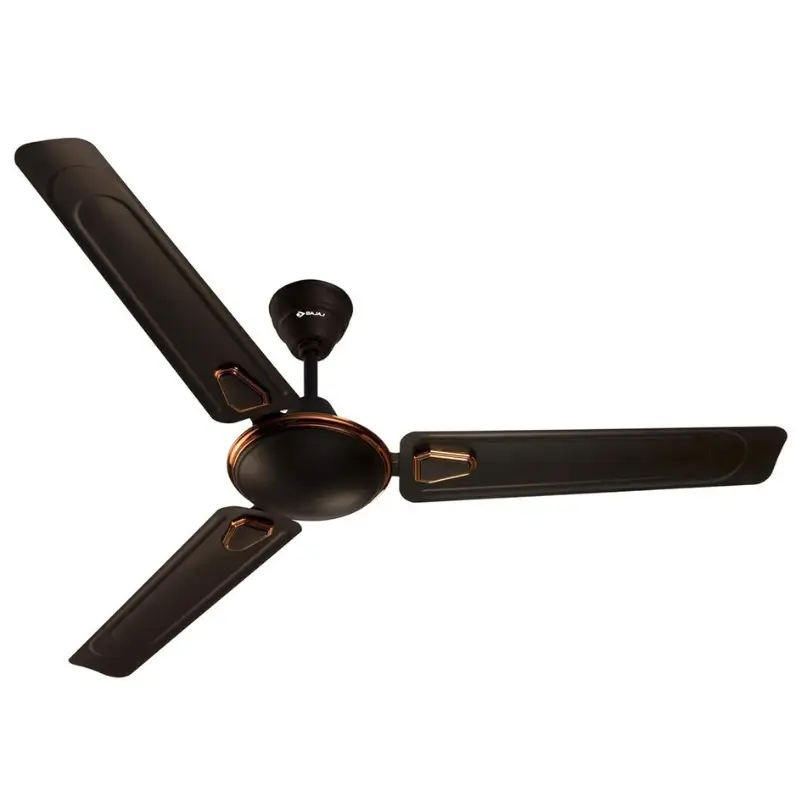 The Bajaj Edge HS Deco Ceiling Fan is designed to meet the cooling needs of Indian households. With its high-speed performance and elegant design, it ensures both comfort and aesthetic appeal. The fan’s 1200 mm sweep and 400 RPM motor deliver a powerful air throw of 200 CMM, making it ideal for living rooms, bedrooms, and dining areas. Its energy-efficient 66W full copper motor ensures durability and lower electricity bills. The Choko Brown finish with metallic deco ornament adds a touch of sophistication to your interiors.