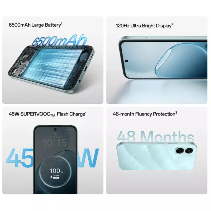The OPPO A6x 5G offers a perfect balance of performance, battery life, and modern design. It is built for smooth everyday use, whether you are watching videos, using social media, or working online. With 5G support and a high refresh rate display, it delivers a fast and fluid experience.
