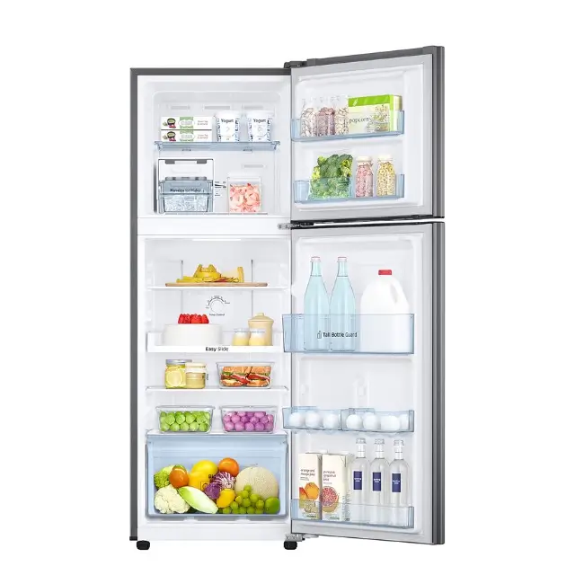 The Samsung 236L Double Door Refrigerator (RT28C3021GS, Grey) is designed to meet the refrigeration needs of modern households. Its Digital Inverter Compressor ensures energy-efficient performance and long-lasting durability. The Frost Free technology prevents ice build-up, reducing the need for manual defrosting.